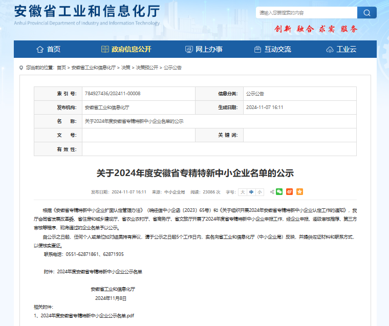 2024年11月,安徽省工業(yè)和信息化廳發(fā)布《關(guān)于 2024 年度安徽省專精特新中小企業(yè)名單的公示》,經(jīng)一系列嚴(yán)謹程序,泰石節(jié)能(安徽)有限公司脫穎而出,榮獲 2024 年度安徽省...
