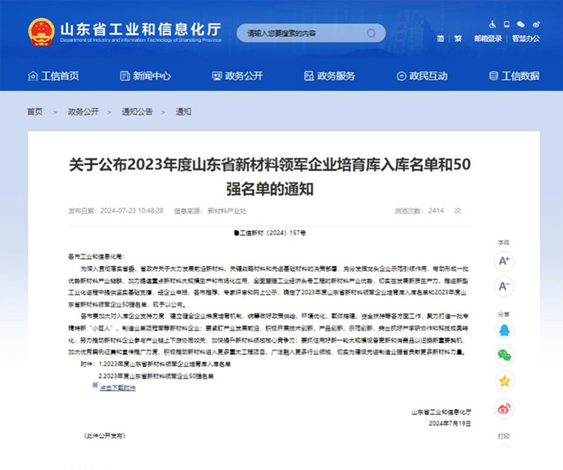 泰石節(jié)能入選山東省新材料領(lǐng)軍企業(yè)培育庫入庫企業(yè)名單